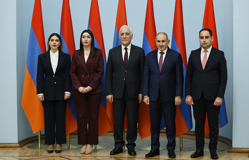 Նախագահական նստավայրում ՀՀ նախագահ Վահագն Խաչատուրյանի և վարչապետ Նիկոլ Փաշինյանի ներկայությամբ տեղի է ունեցել Ներքին գործերի նախարար Արփինե Սարգսյանի, Արդարադատության նախարար Սրբուհի Գալյանի և Տարածքային կառավարման և ենթակառուցվածքների նախարար Դավիթ Խուդաթյանի երդման արարողությունը: