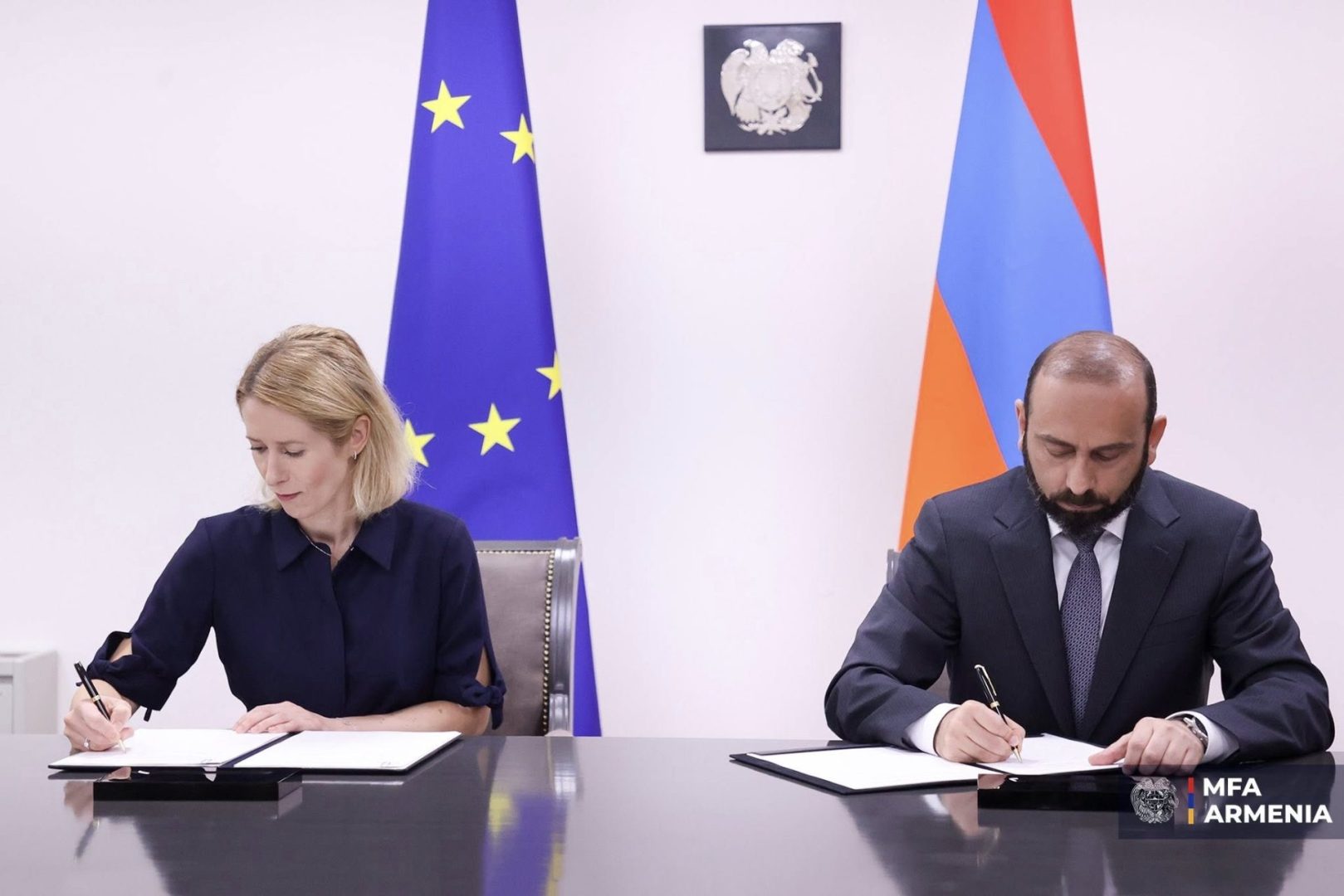 Արարատ Միրզոյանը և Կայա Կալասը ստորագրել են «Հայաստանի Հանրապետության և Եվրոպական միության միջև Եվրոպական միության ճգնաժամային կառավարման գործողություններում Հայաստանի Հանրապետության մասնակցության շրջանակը սահմանելու մասին» համաձայնագիրը: